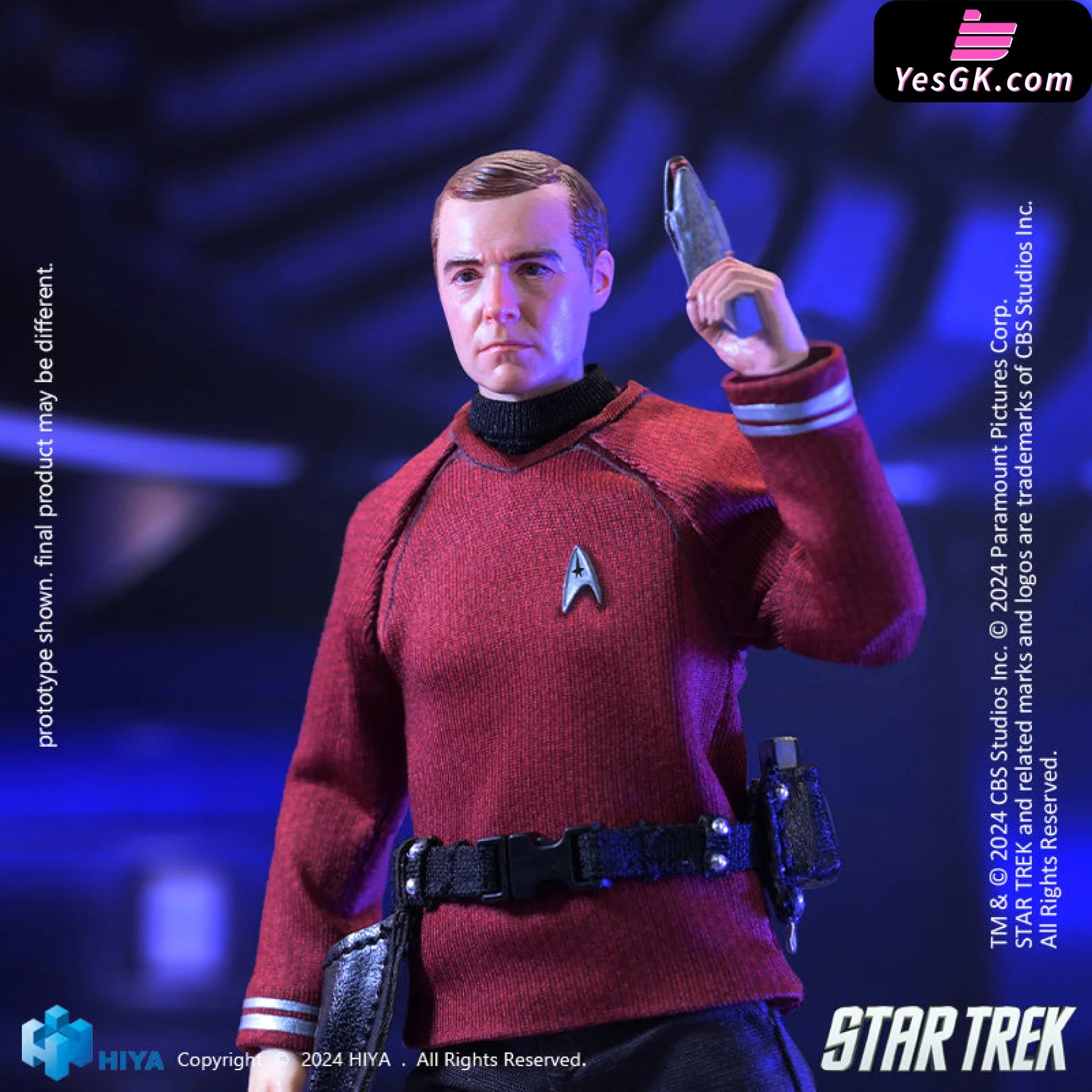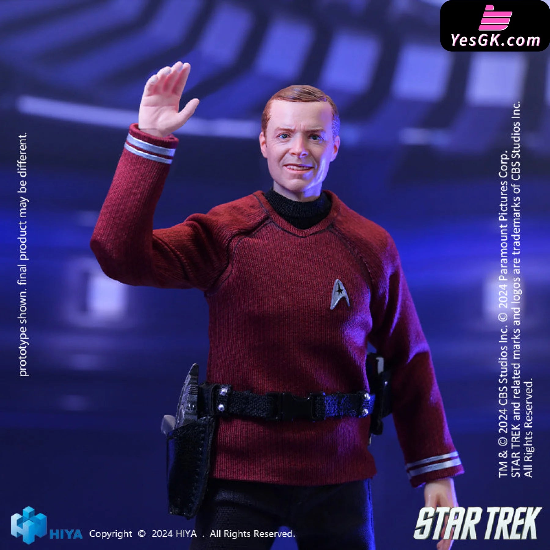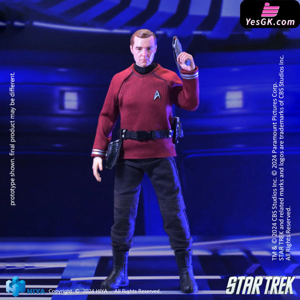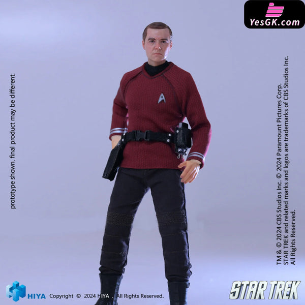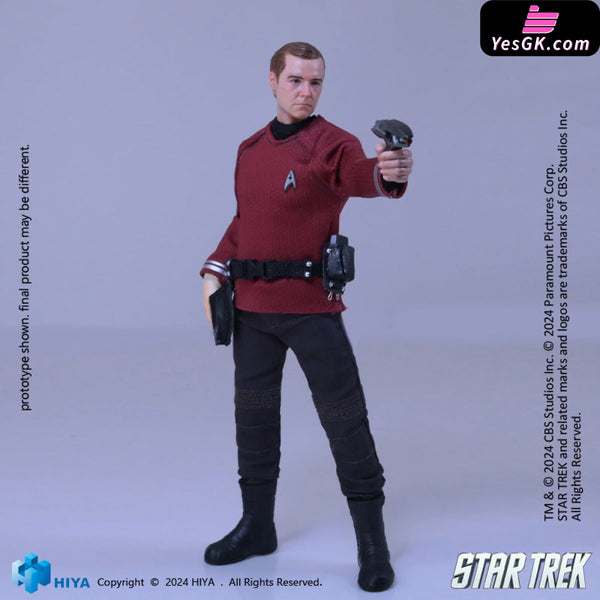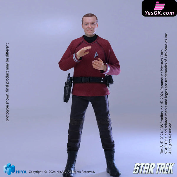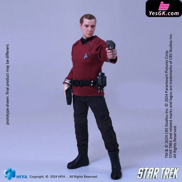 This brand-new EXQUISITE SUPER series 1/12 Scott action figure stands approximately 15.8 CM tall and vividly recreates his appearance in Star Trek 2009. He wears a red shirt representing engineering, adorned with the Starfleet insignia. His shirt, pants, and belt are made from real fabric, ensuring excellent mobility and aesthetic appeal. Accessories, including the Starfleet badge, communicator, and phaser, are finely crafted to showcase his character traits. With numerous articulation points, this figure offers exceptional poseability while maintaining a perfect likeness. It comes with five replacement hands and a replaceable smiling face sculpt to recreate various poses from the film. Additionally, a special base featuring the Star Trek logo is included, immersing you completely in the Star Trek atmosphere.